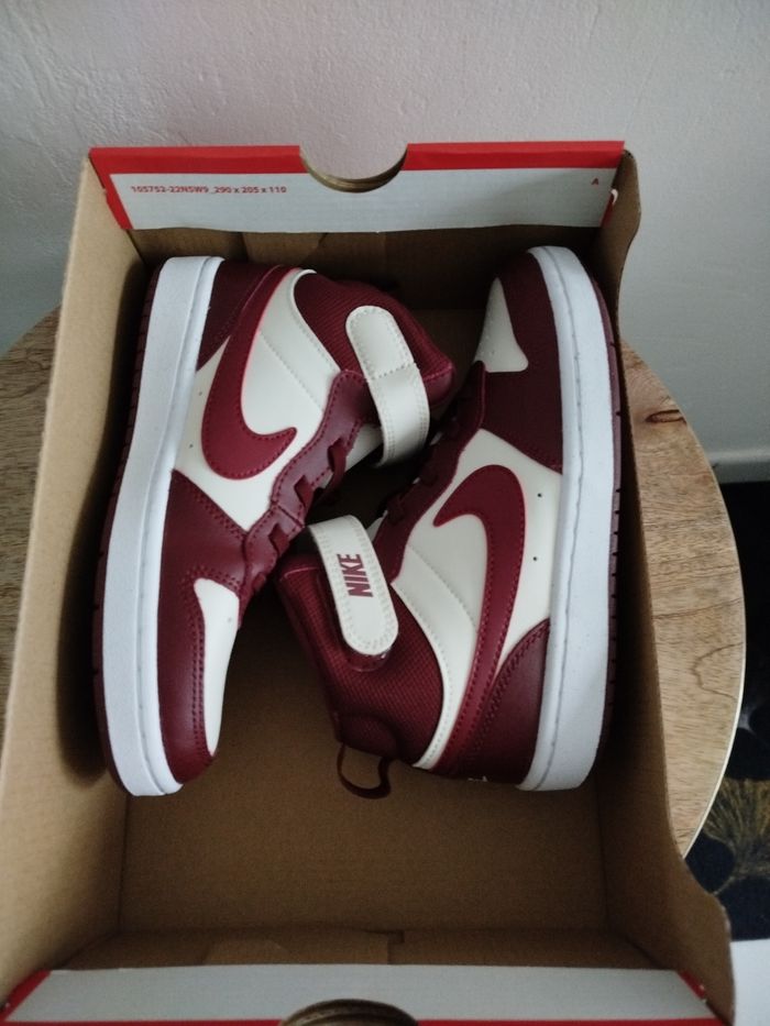 Je vends cette paire de baskets Nike pour enfant. - Marque : Nike - Pointure : 33,5 - Couleur : Blanc bordeaux - Modèle : Court borough mid 2 - État Neuf Boîte sans couvercle N'hésitez pas à me contacter pour plus d'informations ou de photos.