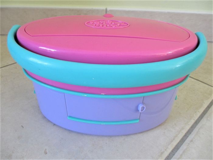Polly Pocket Bluebird 1995 – Light-up Fashion Show Pas de personnage. Les lumières fonctionnent aléatoirement. Un peu difficile à ouvrir. Bon état.