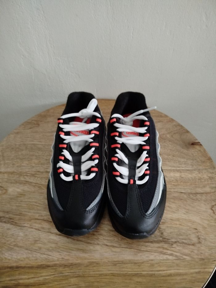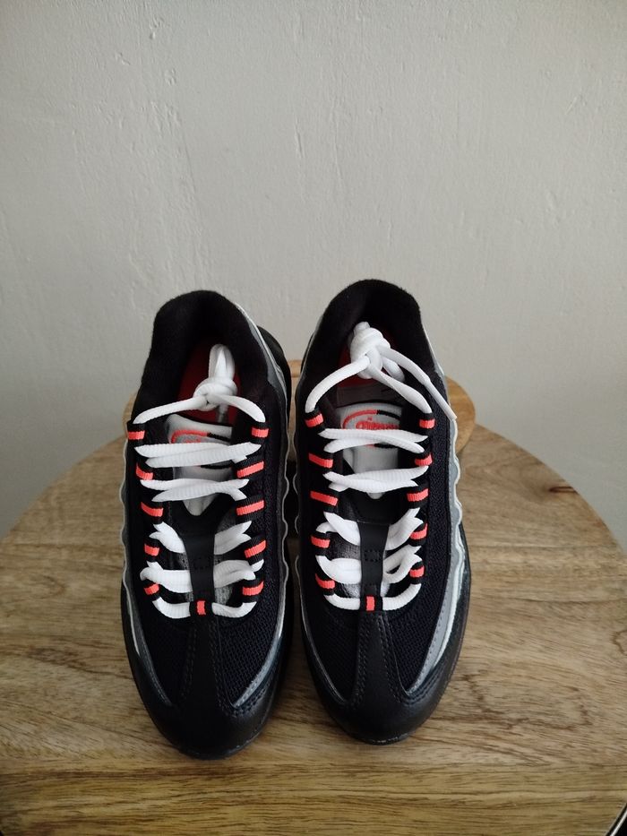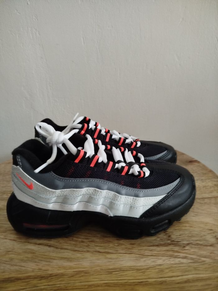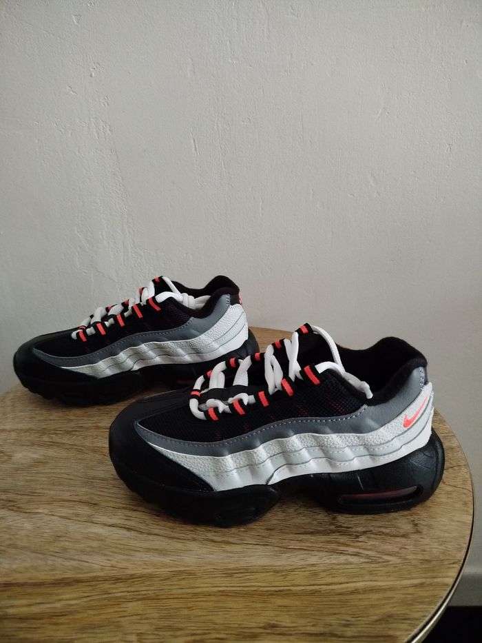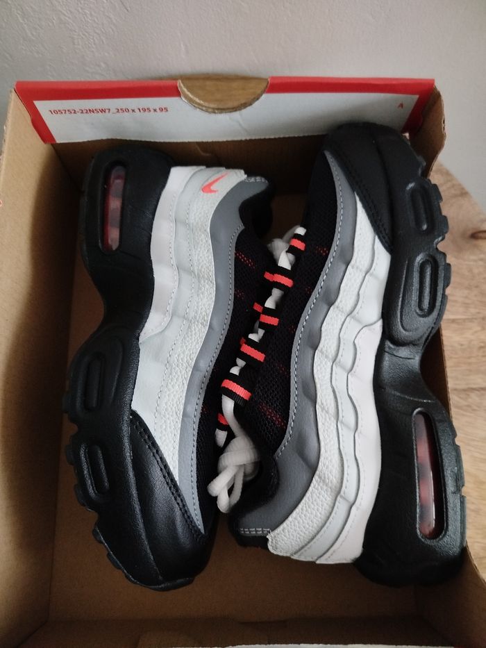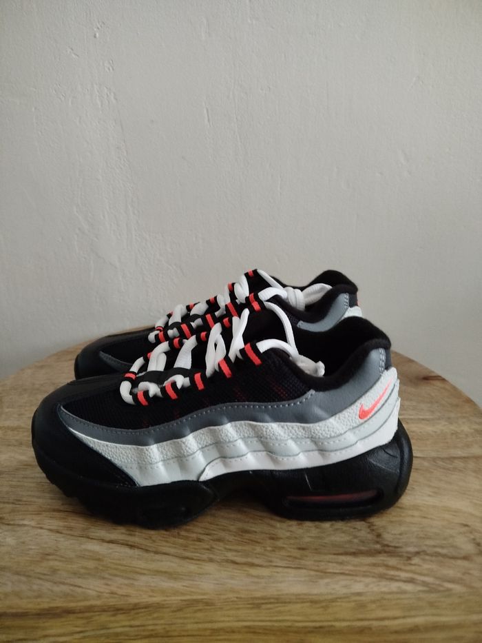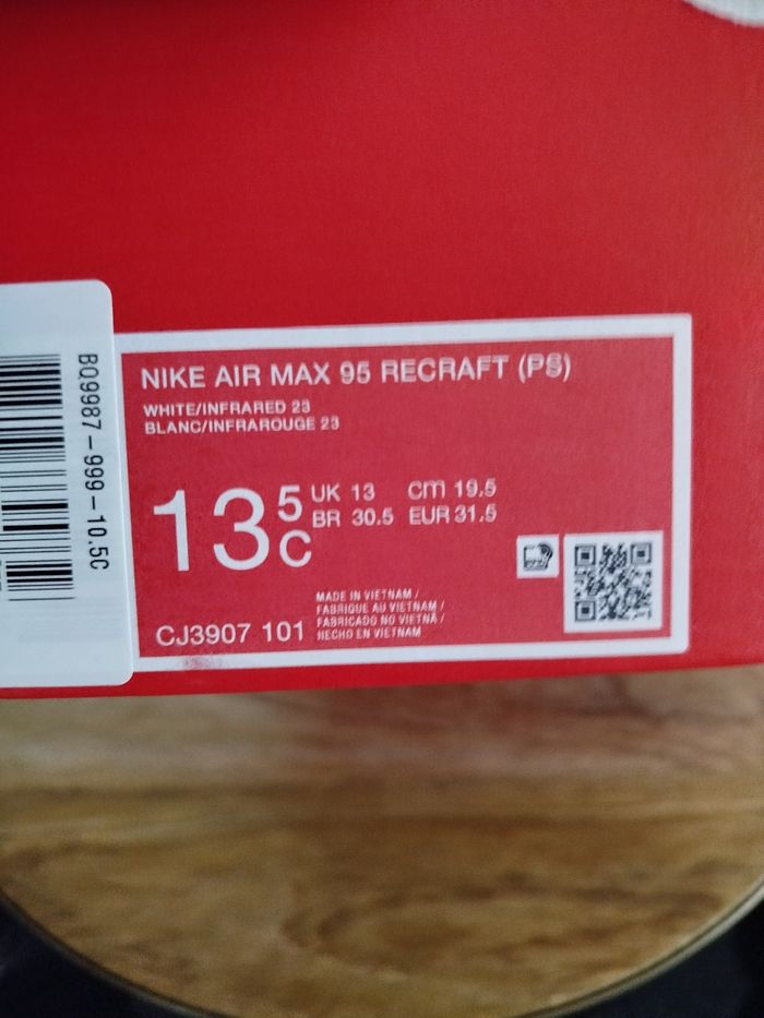 Je vends cette paire de baskets Nike pour enfant. - Marque : Nike - Pointure : 31,5 - Couleur : gris & rouge - Modèle : Air Max 95 recraft - État Neuf Boîte sans couvercle N'hésitez pas à me contacter pour plus d'informations ou de photos.