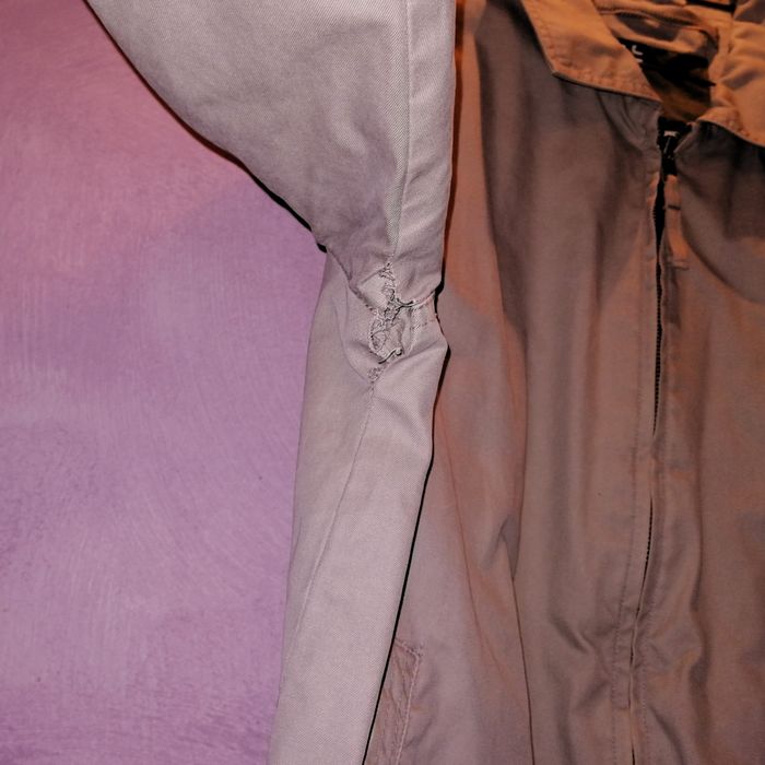 Très bon état général hormis la couture décousue en dessous du bras droit (la réparation est possible et surtout le défaut n’est pas visible une fois le blouson porté)
