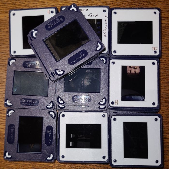 Lot de 59 caches diapositives Avec écritures dessus Couleur blanc et bleu (Plusieurs lots disponibles N'hésitez pas a me demander)