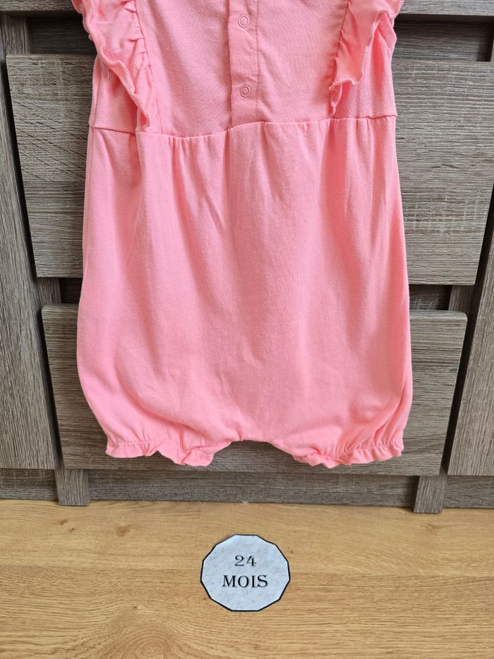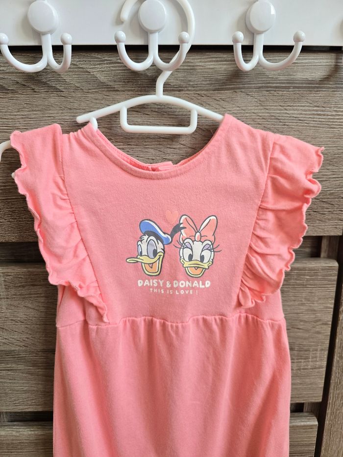 📜 Barboteuse/ combinaison courte rose avec un imprimé de Donald et Daisy