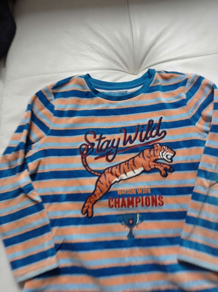 Bonjour 👋 Envoi rapide et soigné 🎁📬✨ 1 pyjama de 2 pièces en très bon état✨ malgré une légère éclaircie aux genoux 🎄🎁✨Si achat d'un beau lot en 6 ans j'offre un pyjama jaune et bleu qui se trouve dans mon dressing. Maison 🏡 non fumeur et sans animaux Réductions à partir de 3 articles 💸 #htencatebradleymerlegarçon6ans Bonne visite 🛍️