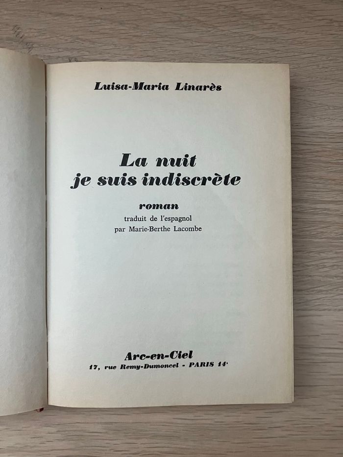 Livre relié-Luisa Maria Linares-La nuit je suis indiscrète - photo numéro 1