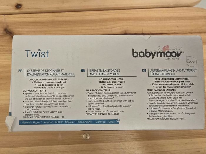 Twist de Babymoov permet de tirer, de stocker et de donner votre lait maternel à l'aide d'un seul sachet de conservation 0 transfert pour conserver 100% du corp gras du lait et éviter les contaminations