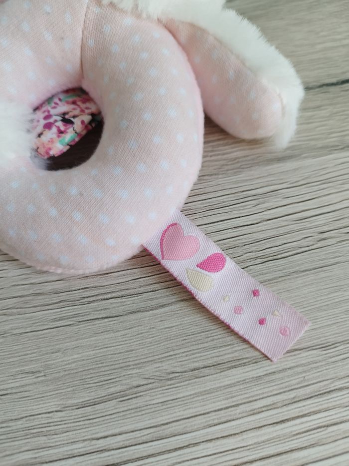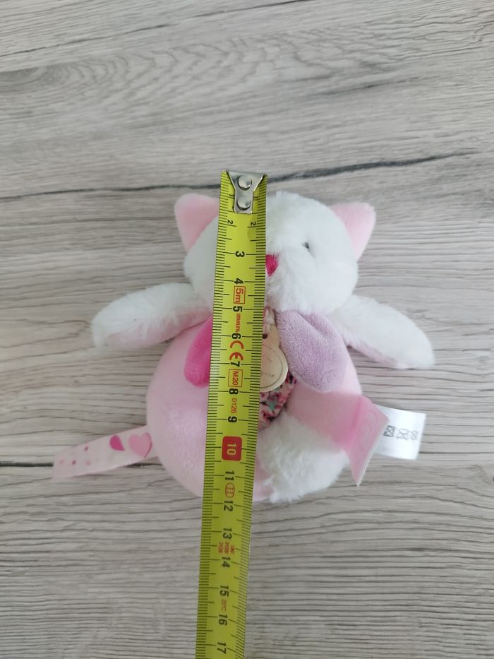 Hochet en peluche chat rose et blanc de la série les gommettes Maison non fumeur et sans animaux #melissarnaudpeluche #melissarnaudjouet #melissarnaudfille #melissarnaudgarcon