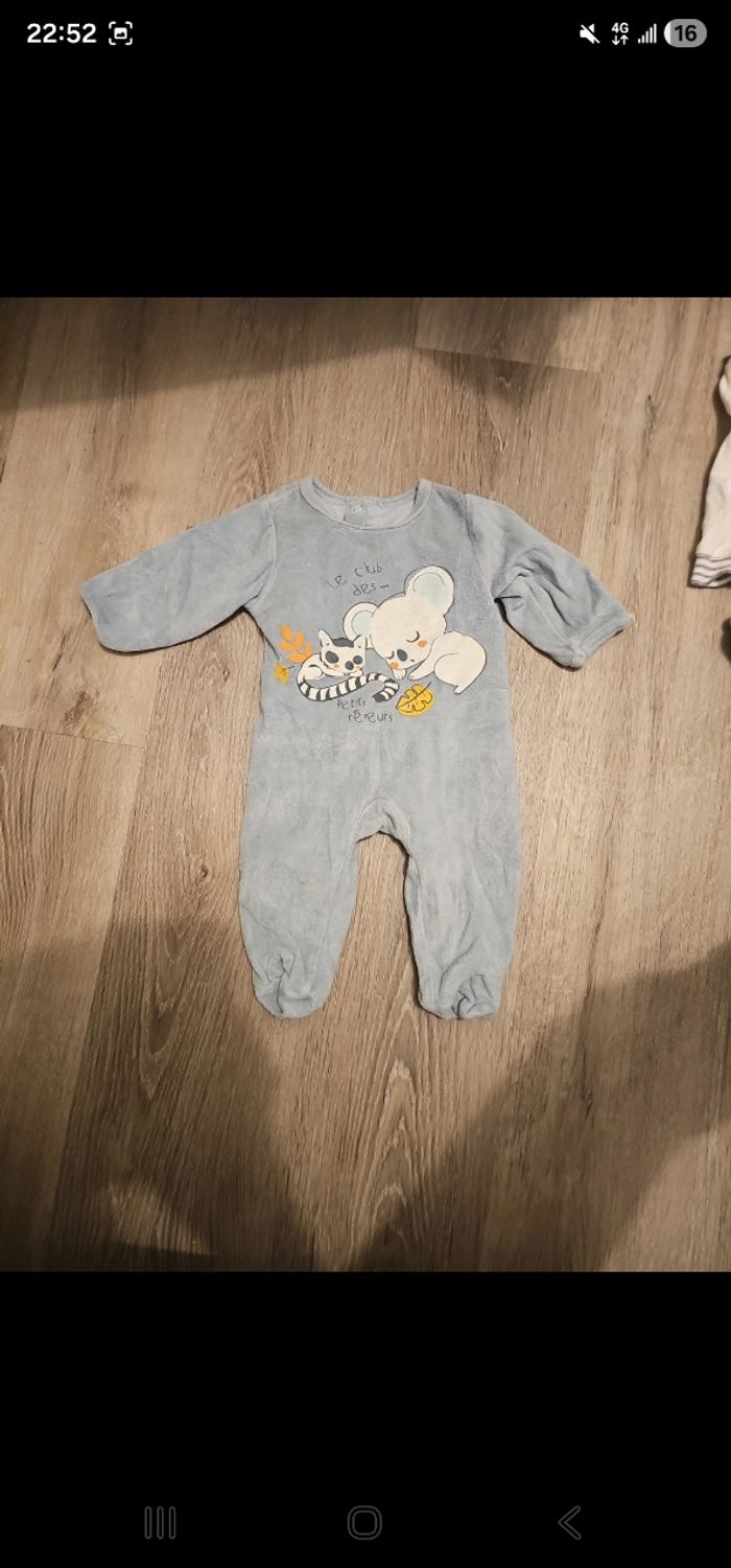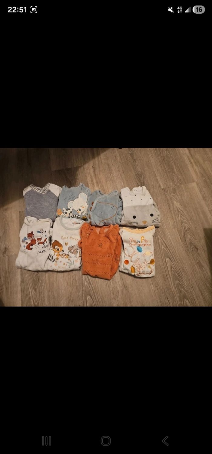 Lot de 8 pyjamas en 3 mois. 6 en très bon état, 1 neuf (photo 8) et 1 dessin casi effacé (photo 9).