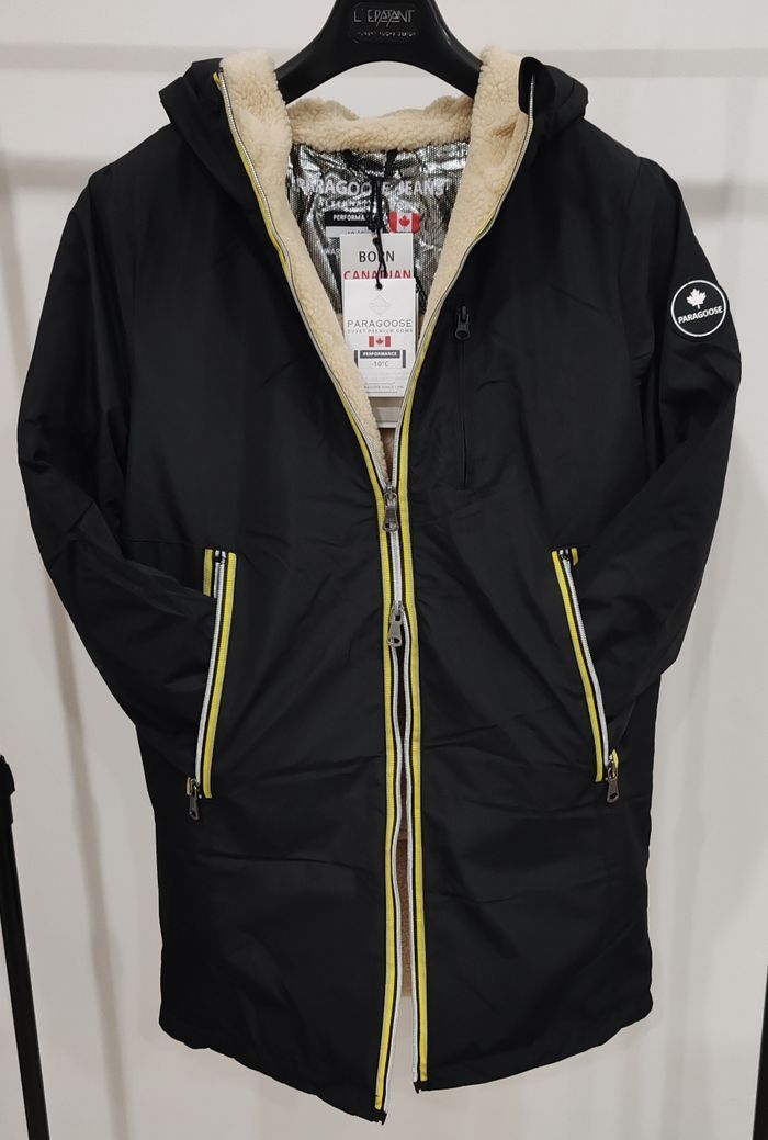 Parka Paragoose Neuve jamais portée Taille XXL ⚫Couleur noir ☔100% imperméable ❄️Garantie grand froid -10° 🌬️Protège et coupe le vent 🌡️Garde la chaleur Parka entièrement doublée ainsi que la capuche fourrée extrêmement chaude très très belle finition 2 poches côtés avec fermetures éclairs 1 poche intérieure