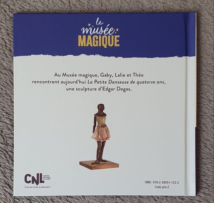 Résumé : Au Musée Magique, Gaby, Lalie et Théo découvrent aujourd'hui La Petite Danseuse de quatorze ans, une Sculpture d'Edgar Degas.. Date de parution : 05/02/2025. Auteur : Agnès Martin-Lugand. Illustrateur : Lisa Guisquier. Collection : Le Musée Magique. Éditions : Hachette Jeunesse. =) 28 pages. État neuf!