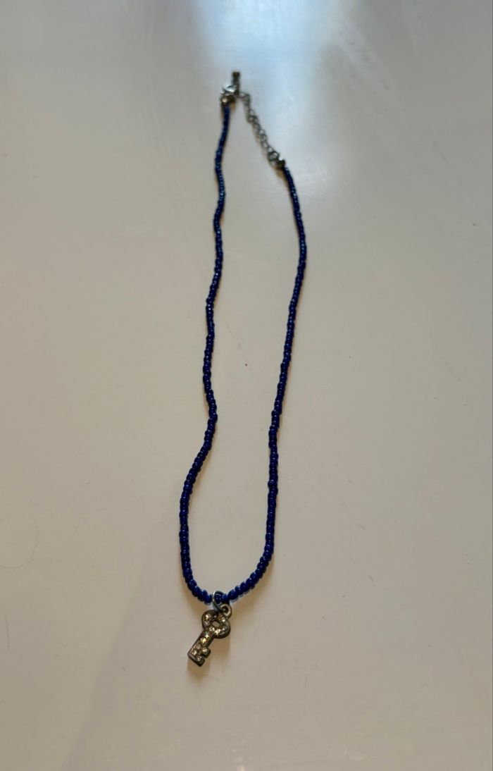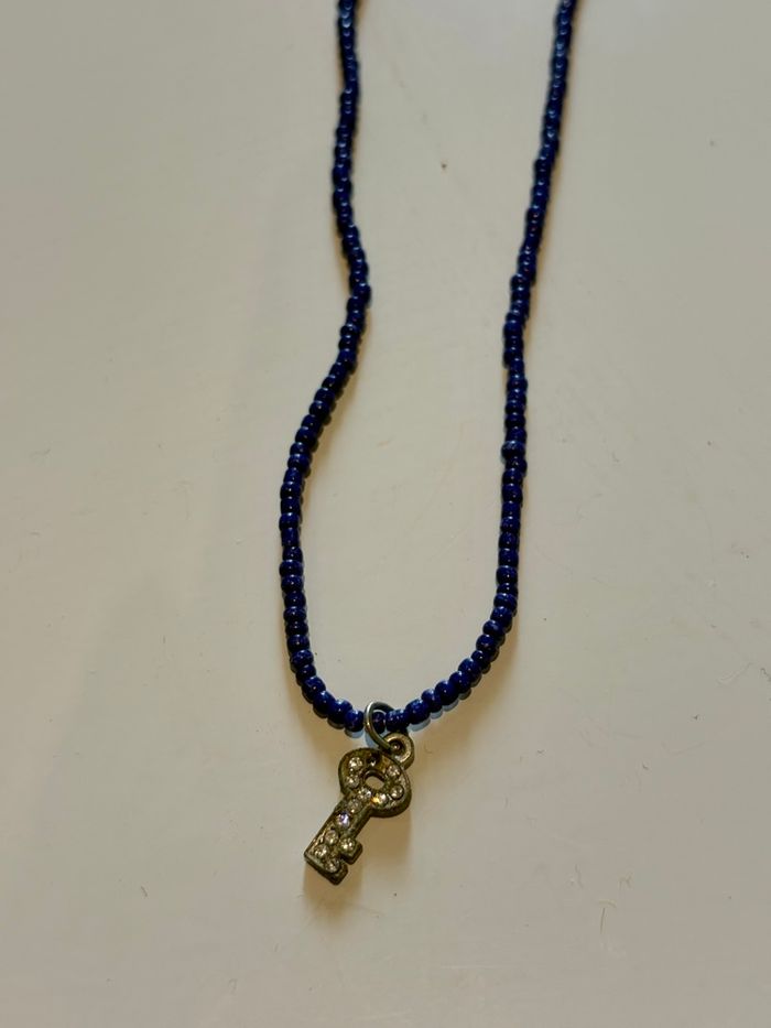 💍Types d’article : Collier à perles bleues avec pendentif clé strassée