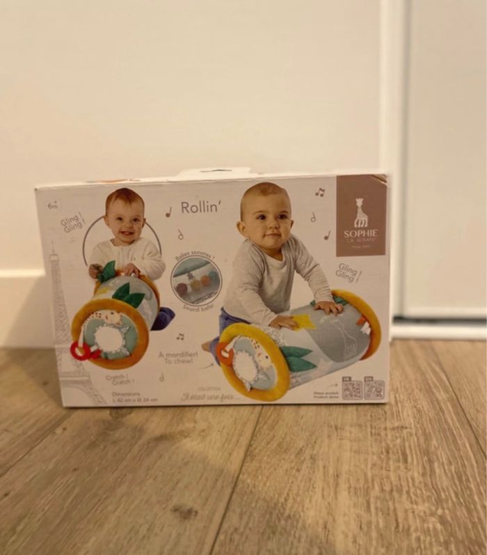 Allongé, assis, ou debout bébé s'amuse avec le rouleau en toute sécurité grâce à ses rebords molletonnés.