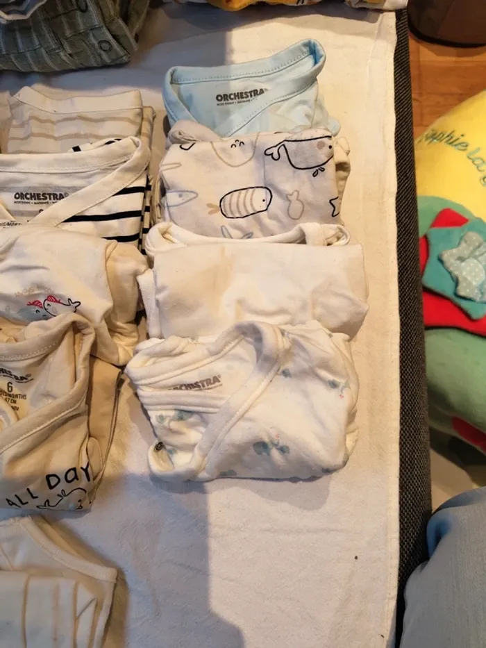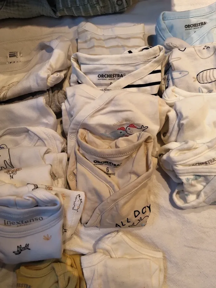 14 body manches courtes 2 body sans manche Ouverture en mode t-shirt ou via pression sur le devant Différentes marques avec principalement du orchestra
