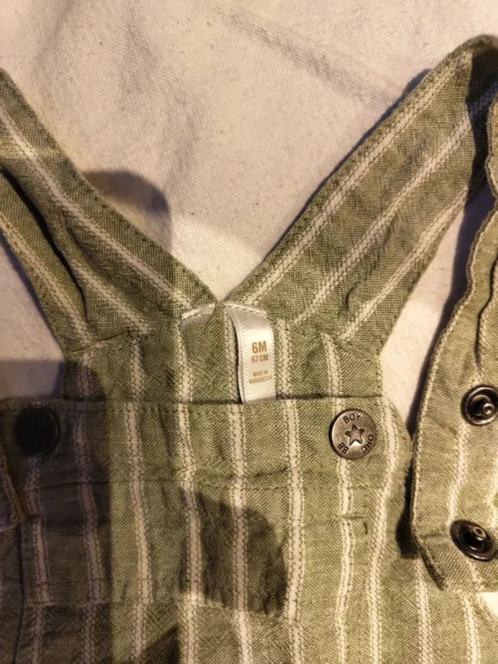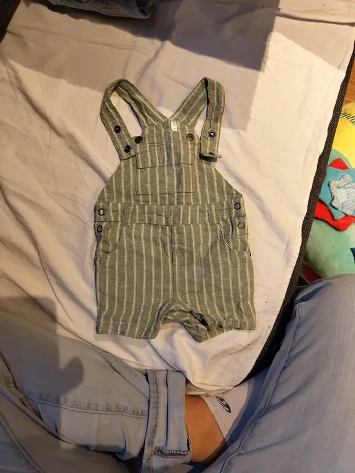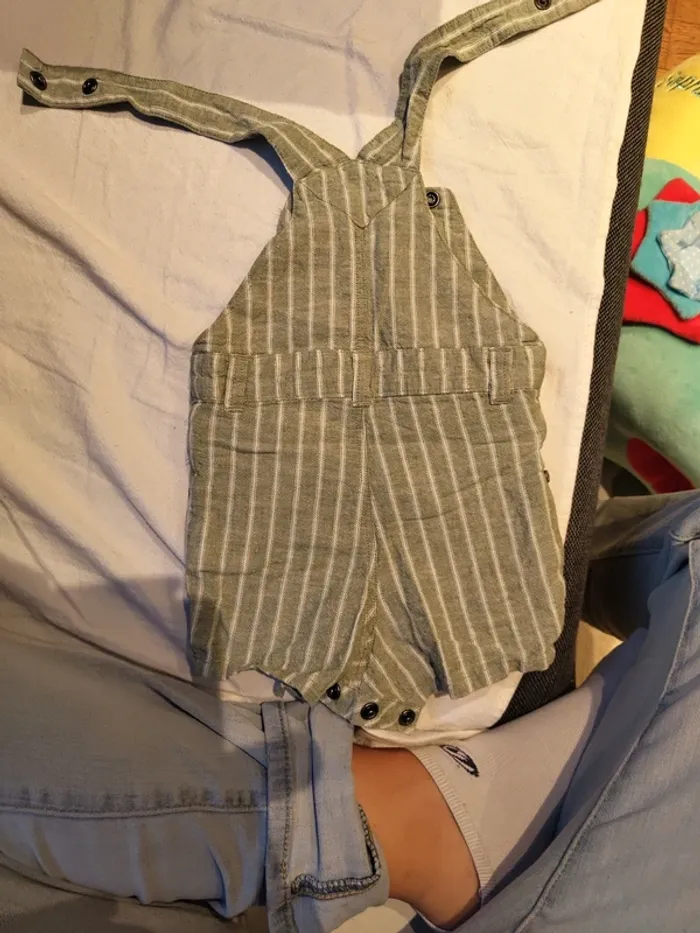 Salopette courte d'été orchestra couleur vert sauge Ouverture pression Vêtement porté en très bon état