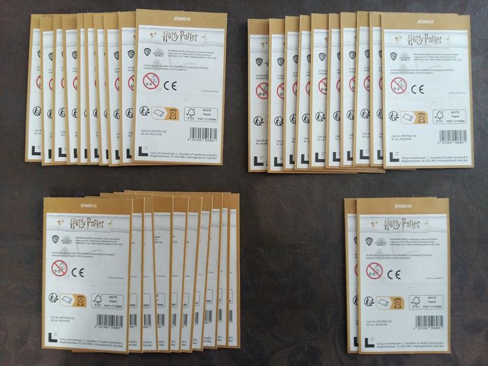 Lot de 32 pochettes en ÉTAT NEUF et SCELLÉES Chaque pochette contient 4 stickers soit 128 stickers au total Édition : "Harry potter - La magie de l'amitié 2022" Soin sur l'emballage pour une expédition sûr et votre colis en sécurité