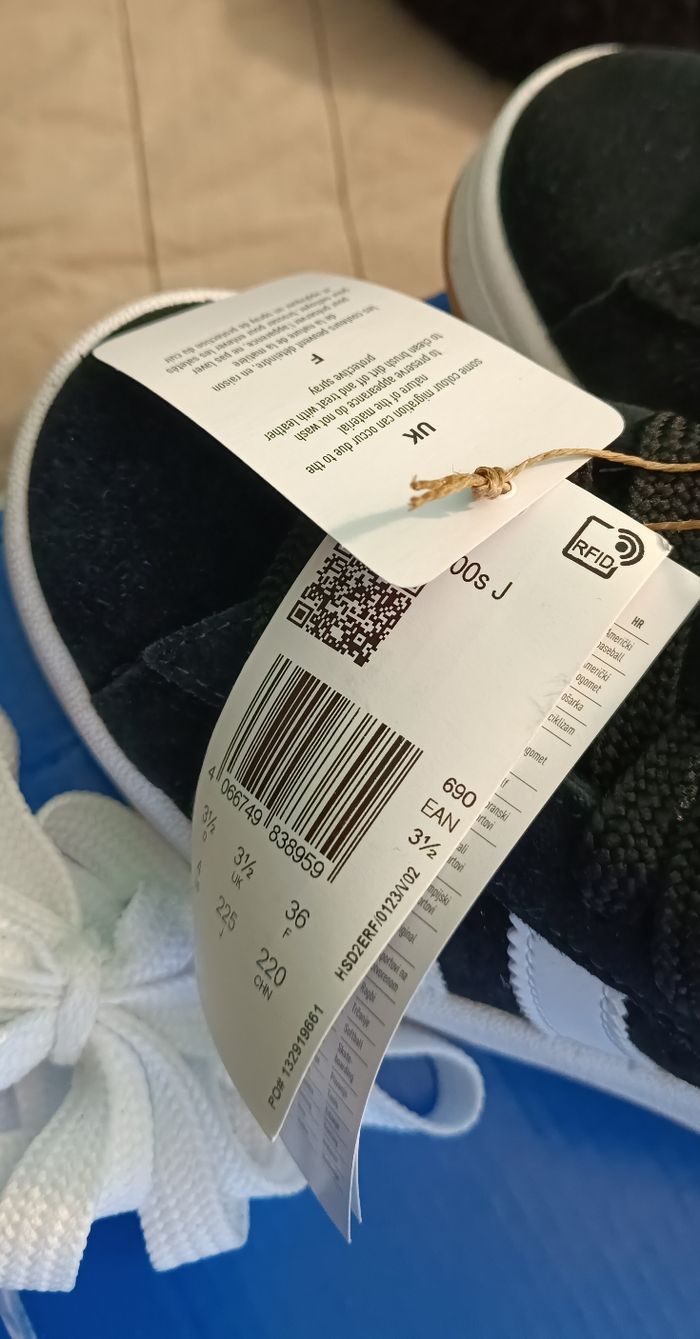 Campus adidas neuves Noires et blanches 2 paires de lacets Étiquette et boîte Pointure 36