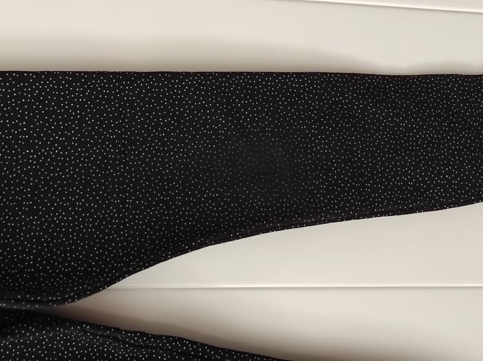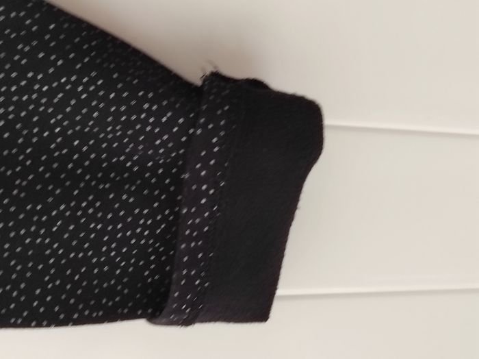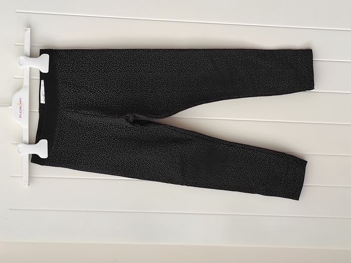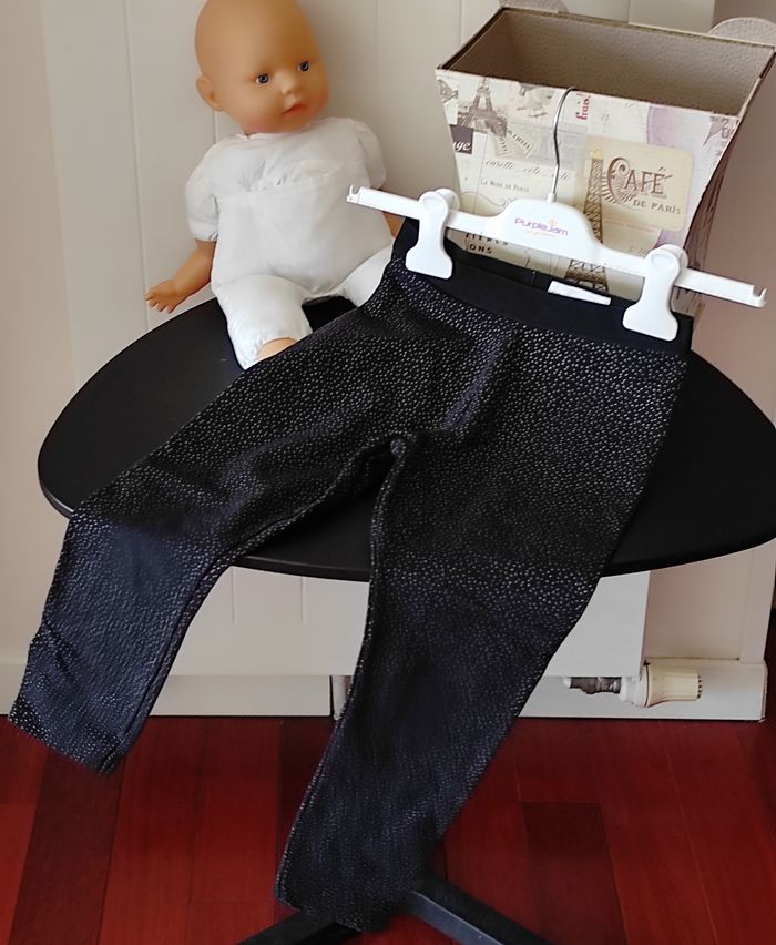 "Legging pour fille, taille 7 ans Doublé polaire, chaud et confortable pour l’hiver Taille élastique large pour un bon maintien Motif pois, coloris noir et argent ⚠️ À noter : motif un peu effacé au niveau des genoux et des fesses, mais le legging reste en très bon état 👉 Idéal pour l’école ou les sorties au froid"