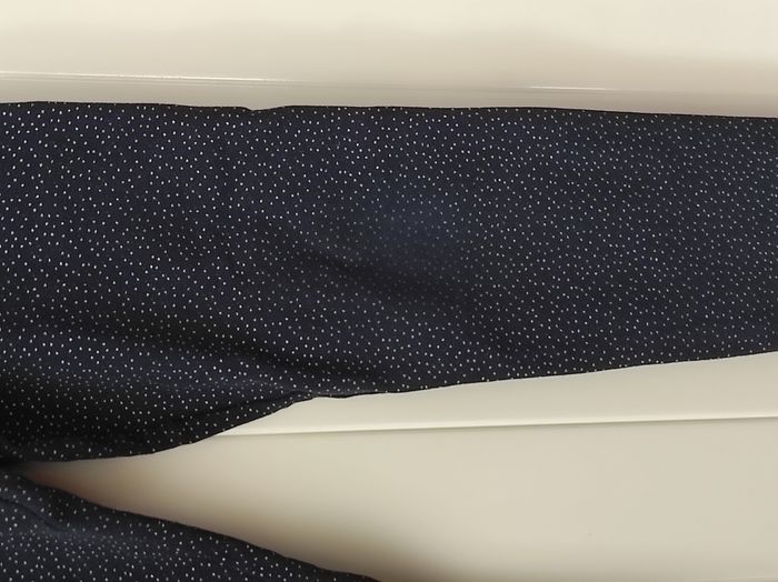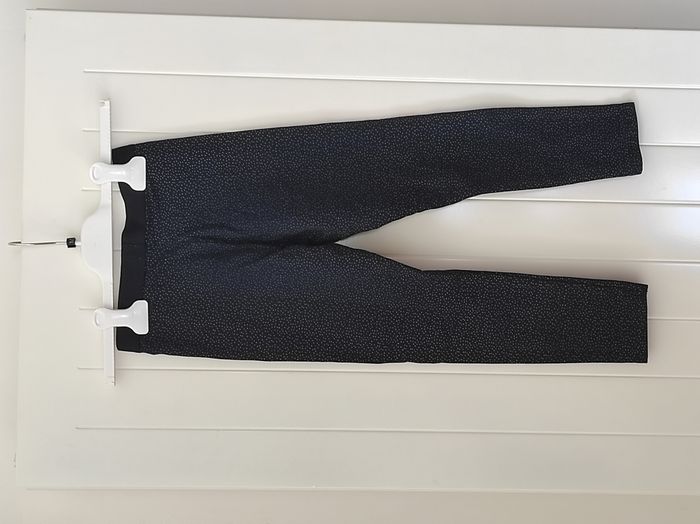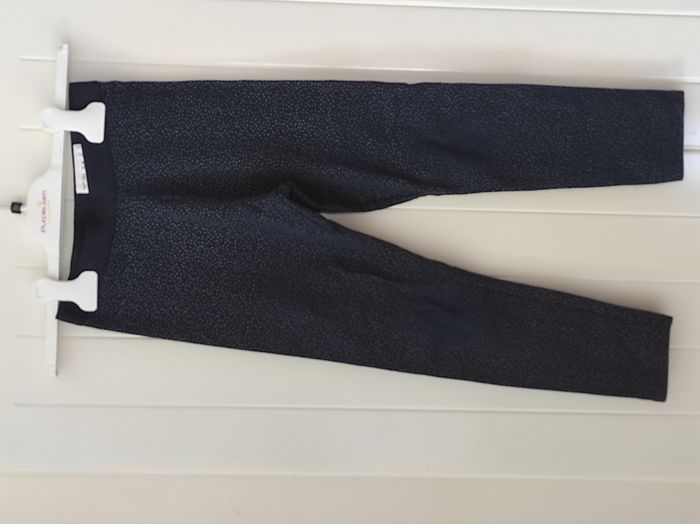 "Legging pour fille, taille 7 ans Doublé polaire, chaud et confortable pour l’hiver Taille élastique large pour un bon maintien Motif pois, coloris marine et argent ⚠️ À noter : motif un peu effacé au niveau des genoux et des fesses, mais le legging reste en très bon état 👉 Parfait pour l’école ou les sorties au froid"