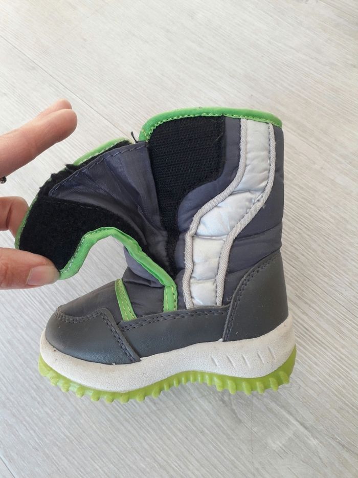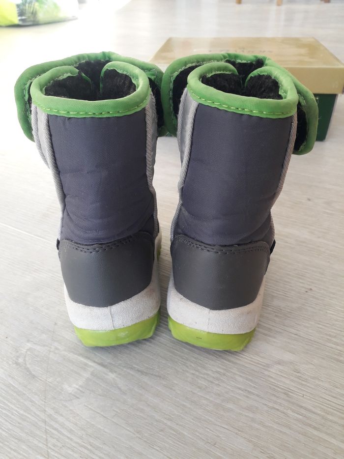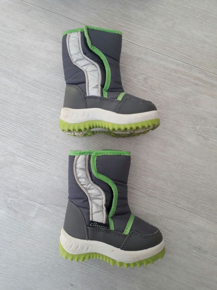 Bottes de neige en très bon état de la marque le chamois pointure 20 vendues dans la boîte d'origine. Elles sont fourrées. Elles se ferment à l'aide de 2 scratch pour faciliter l'habillage /déshabillage. Il y a une doublure imperméable qui se replie juste derrière les scratch pour être bien sûr que la neige et le froid ne rentrent pas ! Achetées neuves et portées 1 semaine