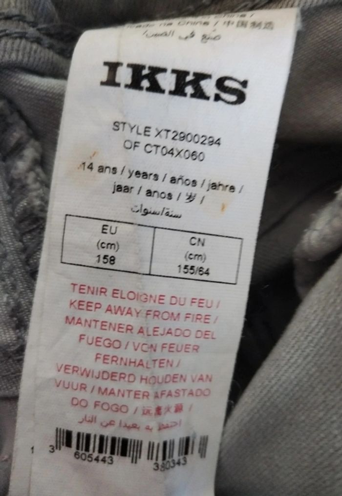 Jean ikks fille slim fit gris 14 ans