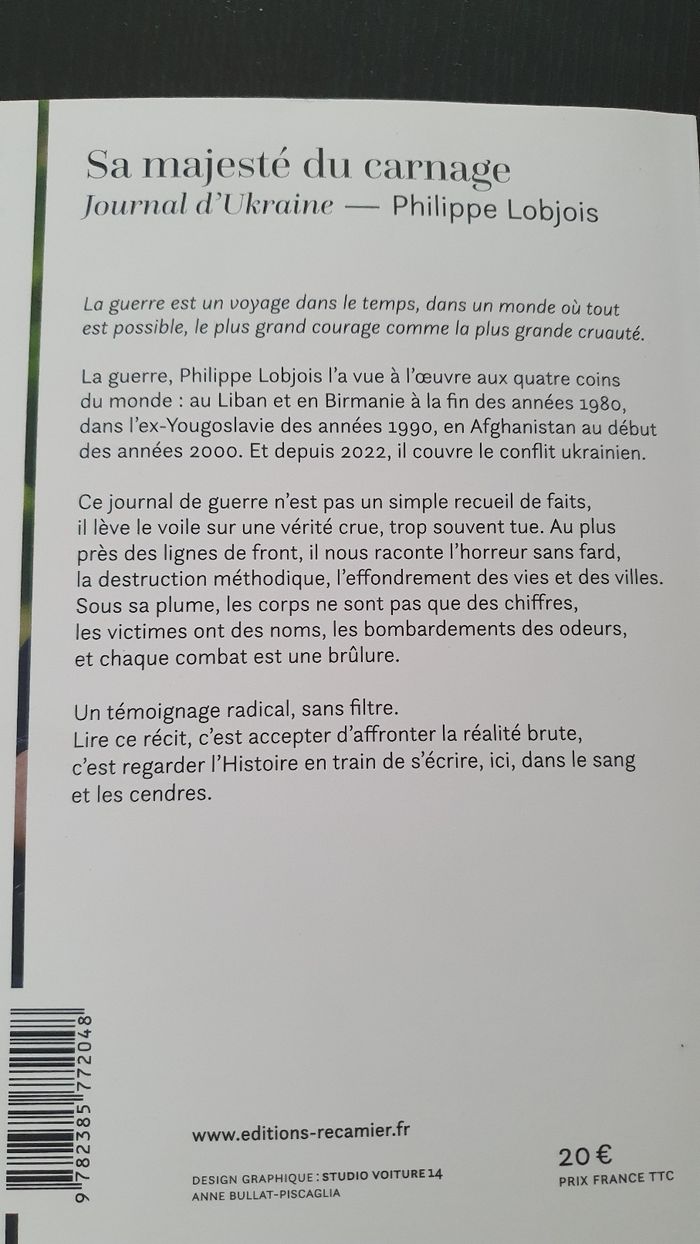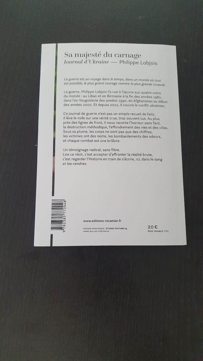 Je vends ce livre "Sa majesté du carnage" de Philippe Lobjois, journal d'Ukraine. - Titre : Sa majesté du carnage - Auteur : Philippe Lobjois Très bon état