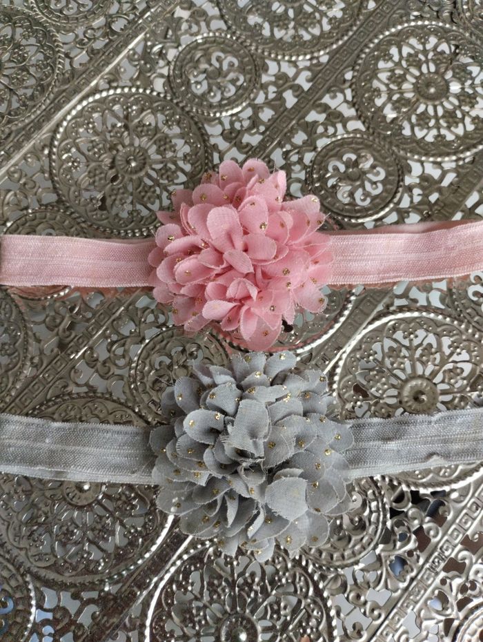 2 bandeaux a fleurs de chez Claire's Un gris, et un rose, les 2 ont des détails dorés dessus. En très bon état, mais on été portés et lavés avant la mise en vente. #bandeau #cheveux
