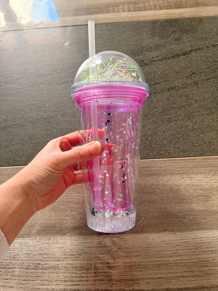 Mug de voyage avec paille à paillettes - photo numéro 1