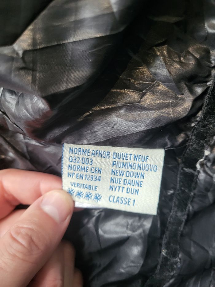 Cette doudoune présente plusieurs défauts et est idéale pour restauration, collection ou récupération de matériaux premium.