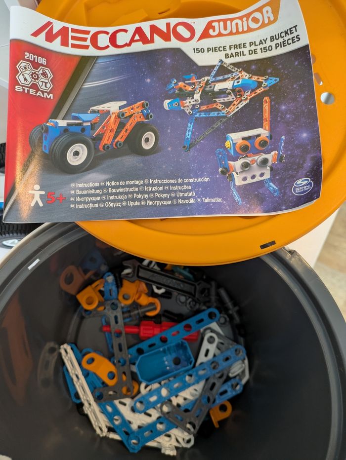 Je vends MECCANO, un baril de 150 pièces, 2 outils et une notice de montage pour 3 modèles ; des possibilités de construction infinies. Servi une ou deux fois donc quasi neuf.