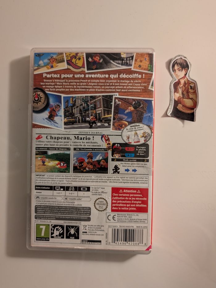 Super Mario Odyssey - Nintendo Switch 🎮 ▪Parfait état de fonctionnement ✅ ▪Prix : 34,9 €💰 ▪Délais d’envoi 24 H 🚚 ▪Colis protéger 📦 N’hésitez pas à m’envoyer un message si vous avez la moindre question ‼ D'autre jeux sont dispo : Super Smash Bros. Ultimate Mario Kart 8 Deluxe Grand Theft Auto: The Trilogy - The Definitive Edition Hogwarts Legacy Super Mario 3D World + Bowser's Fury Super Mario Odyssey Mario Strikers: Battle League Football Yoshi's Crafted World Pokémon Let's Go: Évoli Pokémon Let's Go: Pikachu Super Mario Party New Super Mario Bros. U Deluxe Luigi's Mansion 3 Mario & Sonic at the Olympic Games Tokyo 2020 Donkey Kong Country: Tropical Freeze Mario Golf: Super Rush Pokémon Violet Pokemon Écarlate Nintendo switch sports The Legend of Zelda:Breath of the Wild #switch #nintendo #mariokart #smashbros