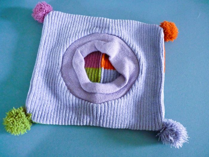 Bonnet Fille beret 52 cm chapeau carré pompon velours multicolore TBE - photo numéro 2