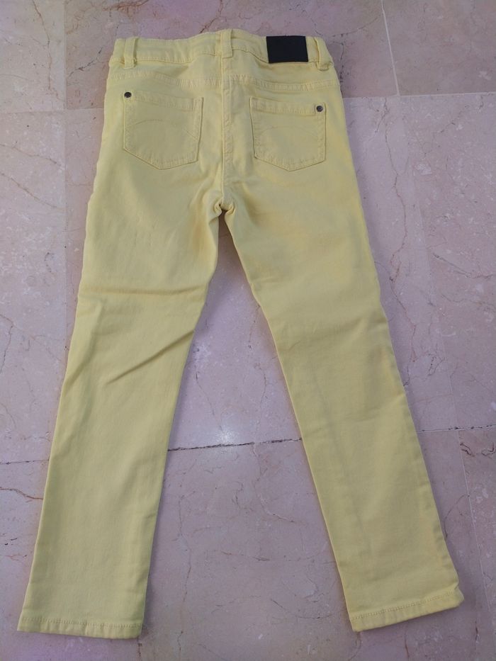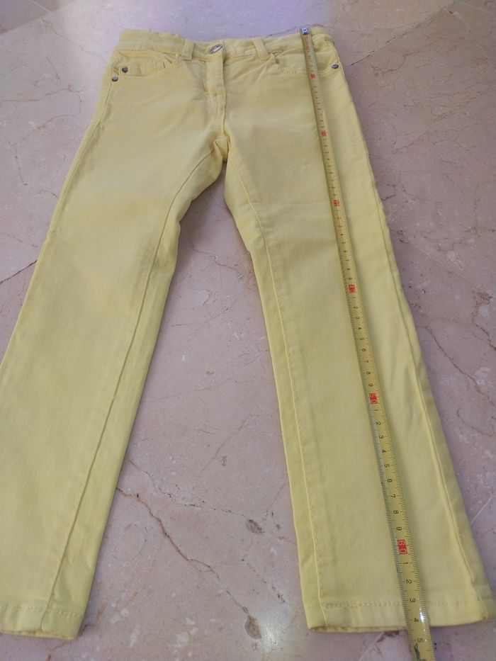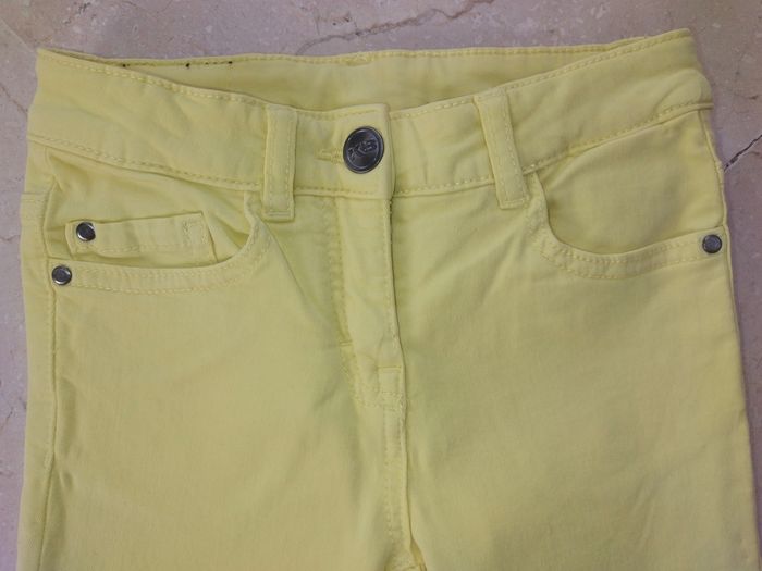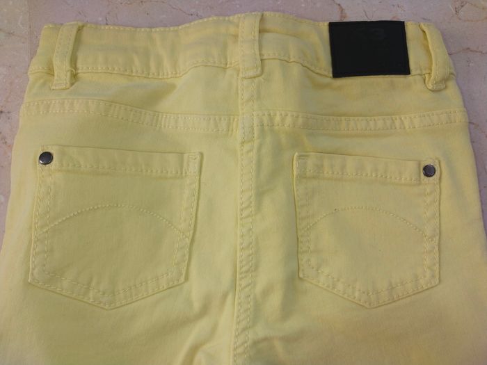 Jean slim jaune (couleur plus vive/lumineuse que sur les photos, sans l'être autant que sur la photo avec les étiquettes) JBC, collection K3, taille 6-7A. Très peu porté, en très bon état. Remise en main propre à Montpellier possible.
