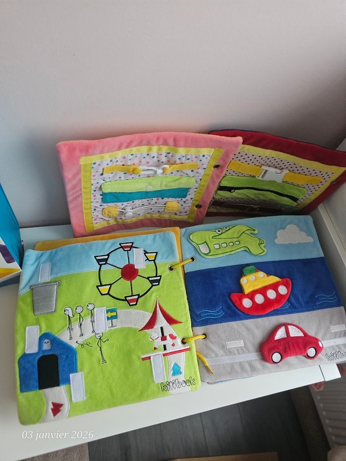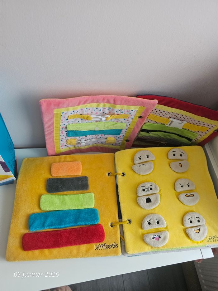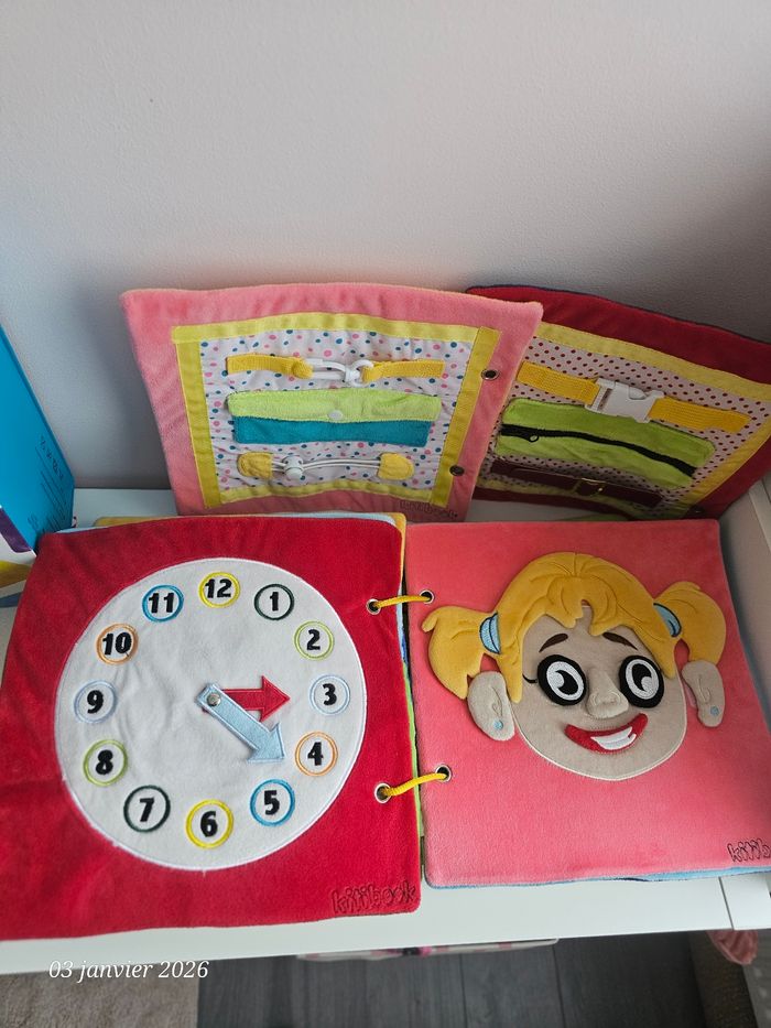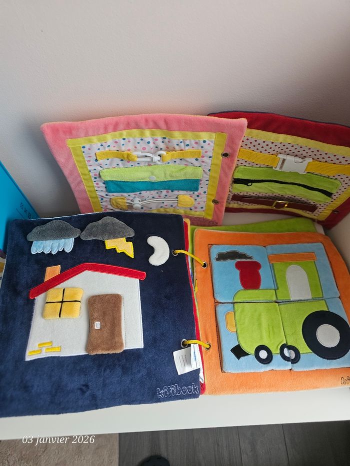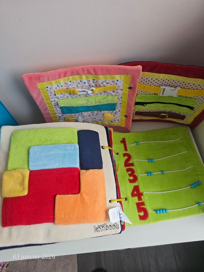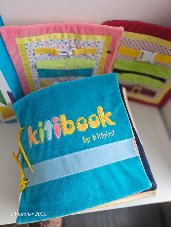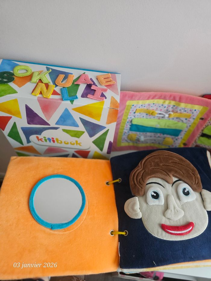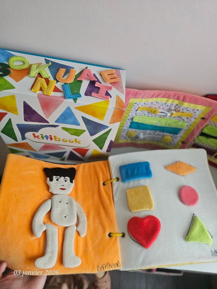 Gros livre kitibook contenant 11 pages soit 22 planches Complet Le livre sera livré avec sa boîte qui est devenue un peu trop petite pour contenir l'ensemble acheter progressivement Quelques lettres sont fournies Possibilité d'acheter les planches a l'unité En très bon état Livres tissus a scratch #kitibookgestesduquotidien #kitibookheure #kitibookcorps #kitibookplanches