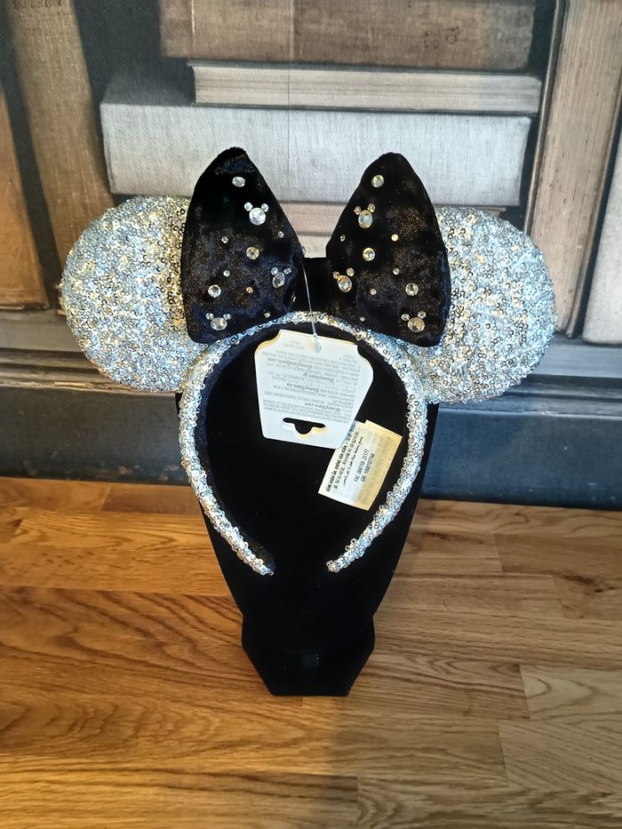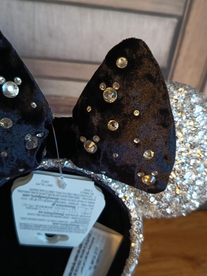 Ears,serre tête a oreille, collection Disney store, nouvel an 2026 , oreille sequin argenté, nœud velour noir et strass Neuf