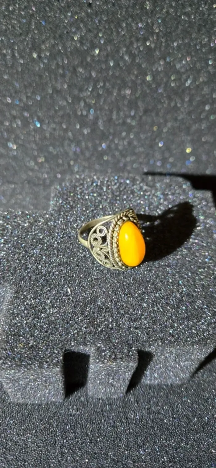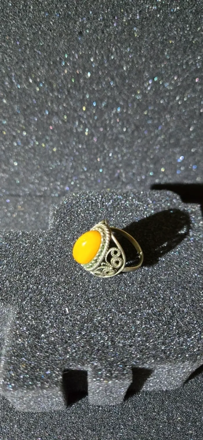 Bague ancienne avec cabochon en ambre balte - photo numéro 1