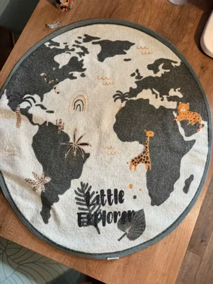 Tapis rond décoratif chambre enfant salle de jeux tbe thème savane Little explorer