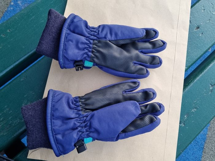 Gants de ski pour enfants imperméable et coupe-vent, les paumes en cuir synthétique antidérapantes, doublure intérieur douce de plus système de boucle anti-perte permet d'attacher les deux gants ensemble
