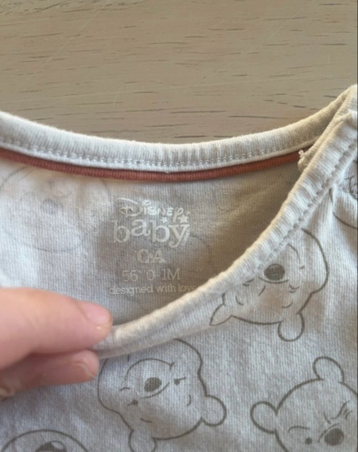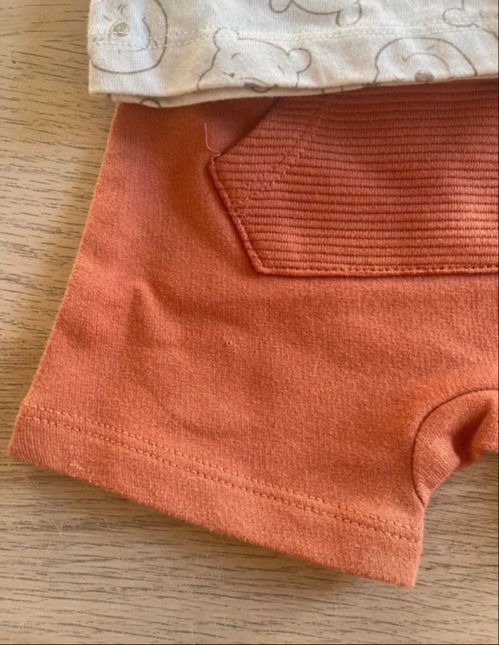 Ensemble Winnie l’ourson t-shirt et short Taille 0-1 mois 56 cm Peu porté Provient de chez C&A À noter, petit trou punctiforme sur le short en regard de l’emplacement de l’antivol, cf les 2 dernières photos