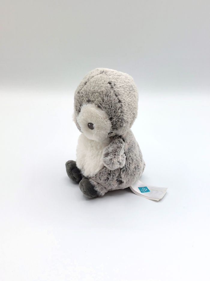 Petite peluche doudou pingouin TEX BABY gris chiné blanc 14 cm