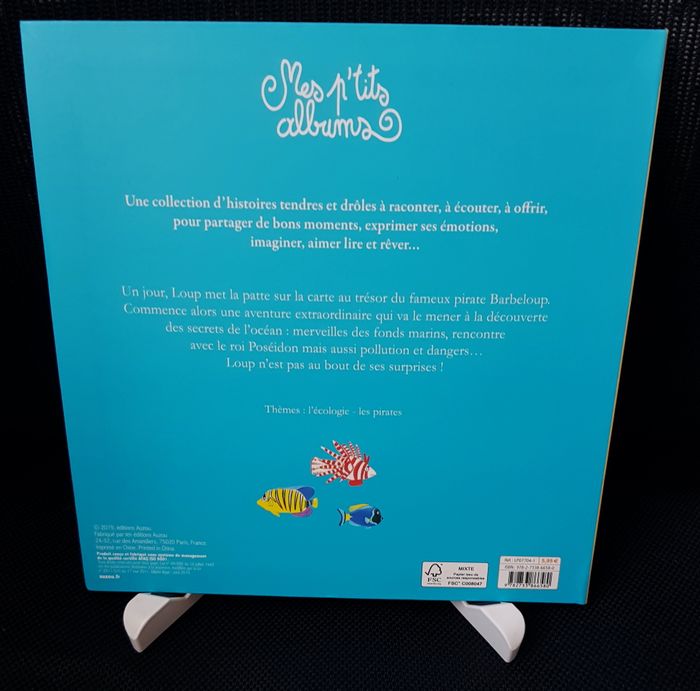 Une collection d'histoires tendres et drôles à raconter, à offrir, pour partager de bons moments, exprimer ses émotions, imaginer, aimer lire et rêver... Un jour, loup met la patte sur la carte au trésor du fameux pirate Barbeloup. Commence alors une aventure extraordinaire qui va le mener à la découverte des secrets de l'océan : merveilles des fonds marins, rencontre avec le roi Poséidon, mais aussi pollution et dangers... Loup n'est pas au bout de ses surprises ! Thèmes : l'écologie - les pirates. Édition souple Format 212x215 EAN 9782733866580 avr-19 Très Bon État, deux plissures sur 1ère de couverture et une légère tache (5 mm), intérieur TBE, sans écritures. Une imposante liste de livres pour enfants disponible, essayez un premier contact :) Poids : 170 g