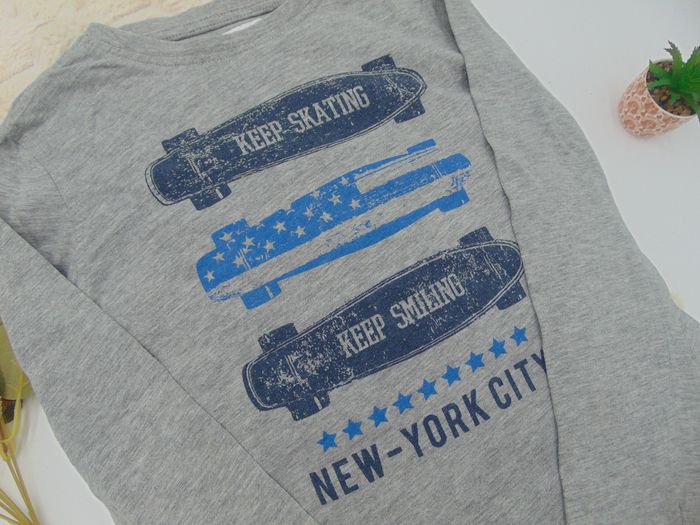 - Manches longues - Couleur gris - Dessin skate bleu foncé et bleu clair - Aucune tâche ni trou