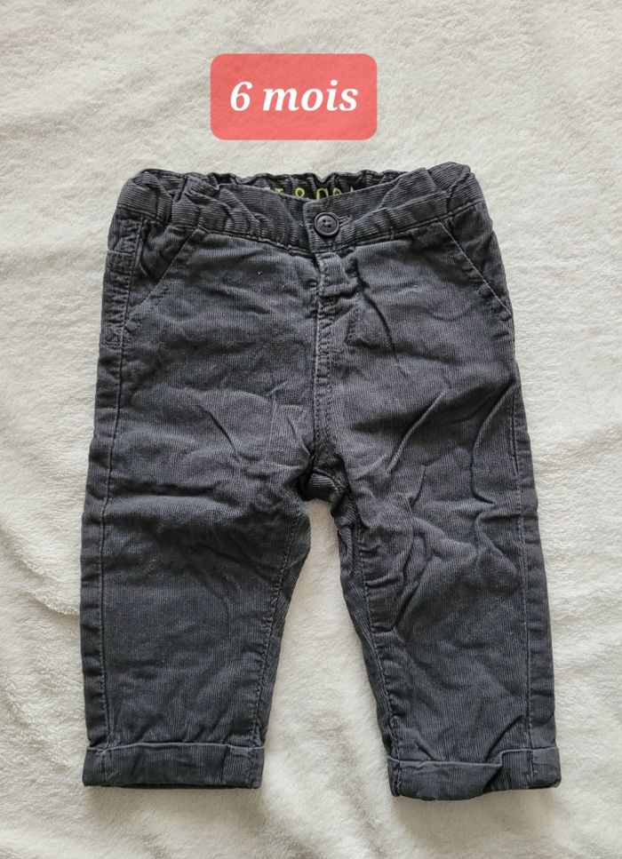 Marque : Kiabi (Gamme Mini & Co) Taille : 6 mois (63-69 cm) État : Très bon état Couleur : Gris anthracite Détails : Joli pantalon en velours côtelé tout doux. Taille élastiquée pour plus de confort et un habillage facile. Petits détails sympas : inscription "Mini & Co" à l'intérieur de la ceinture et bouton décoratif à l'avant. Coupe pratique, idéale pour l'automne ou l'hiver. Maison non-fumeur. Envoi rapide et soigné via le transporteur de votre choix. N'hésitez pas à consulter mon dressing pour faire des lots et réduire les frais de port !