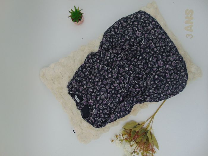 - Légère - Manches longues - Zippée dans le dos - Couleur bleue marine - Dessin fleurs violettes et blanches - Aucune tâche ni trou