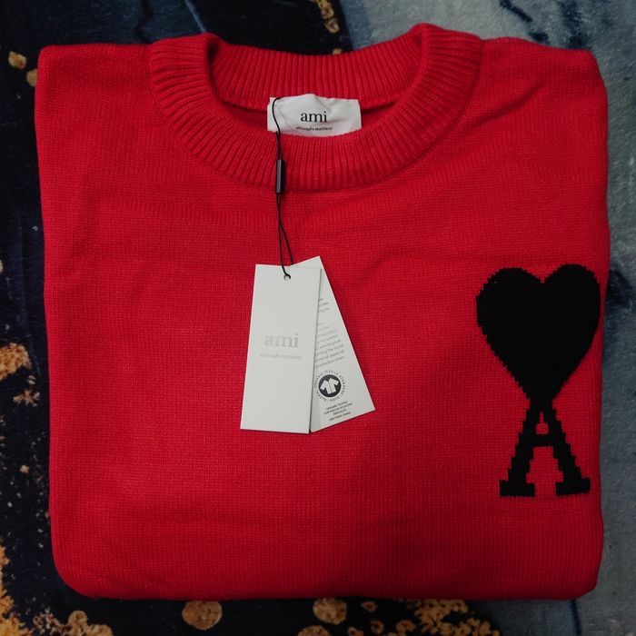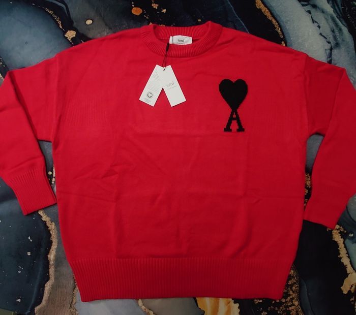 Pull AMI Alexandre Mattiussi Homme Rouge Cœur Noir Taille XL - photo numéro 1