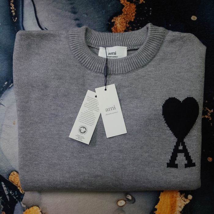 Pull AMI Alexandre Mattiussi Homme Gris Cœur Noir Taille L - photo numéro 1