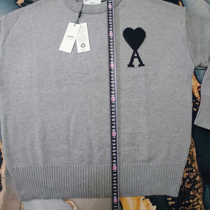 Pull AMI Alexandre Mattiussi Homme Gris Cœur Noir Taille L - photo numéro 5