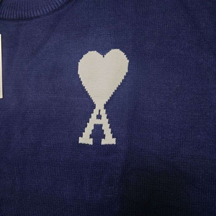 Pull AMI Alexandre Mattiussi Homme Bleu marine Cœur Blanc Taille L - photo numéro 7
