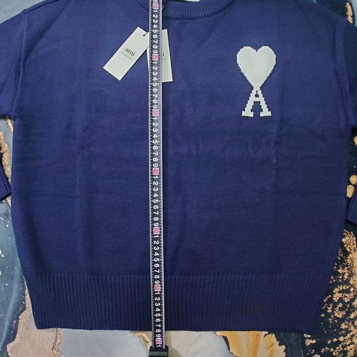 Pull AMI Alexandre Mattiussi Homme Bleu marine Cœur Blanc Taille L - photo numéro 5