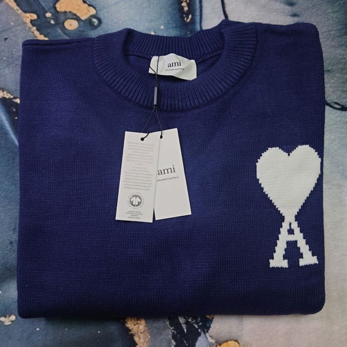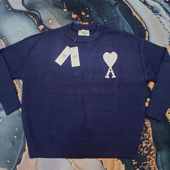 Pull AMI Alexandre Mattiussi Homme Bleu marine Cœur Blanc Taille L - photo numéro 1