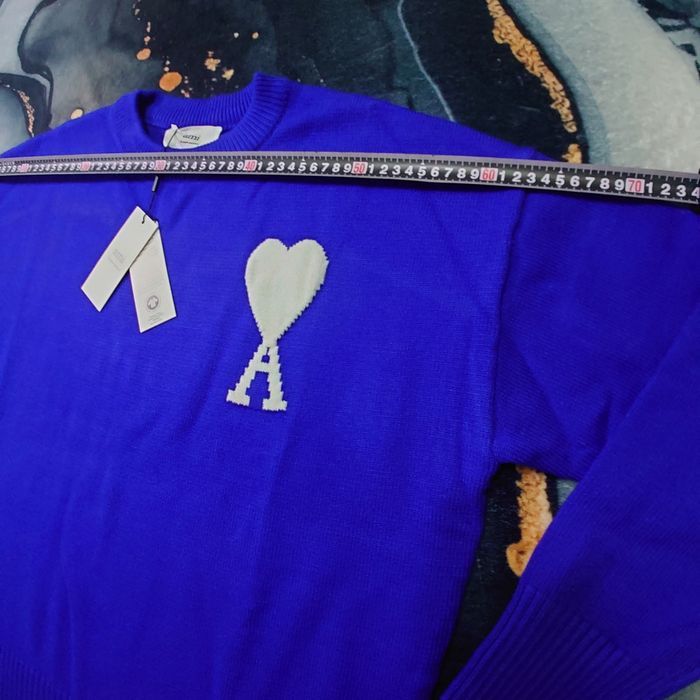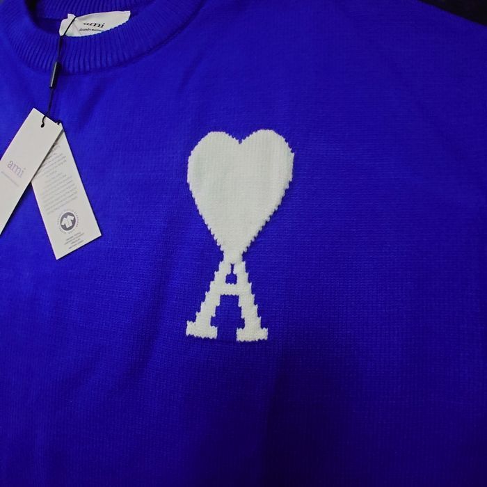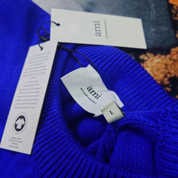 Pull AMI Alexandre Mattiussi Homme Bleu Cœur Blanc Taille L - photo numéro 7