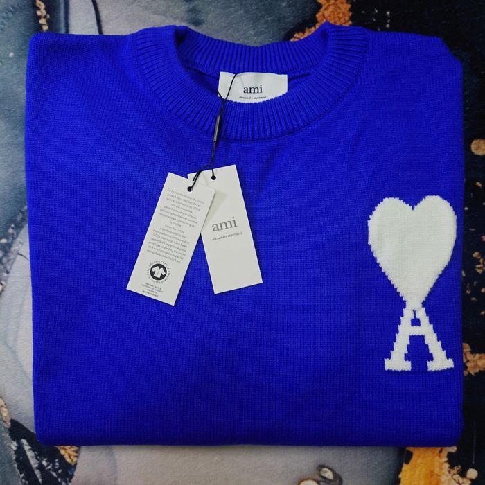 Pull AMI Alexandre Mattiussi Homme Bleu Cœur Blanc Taille L - photo numéro 1